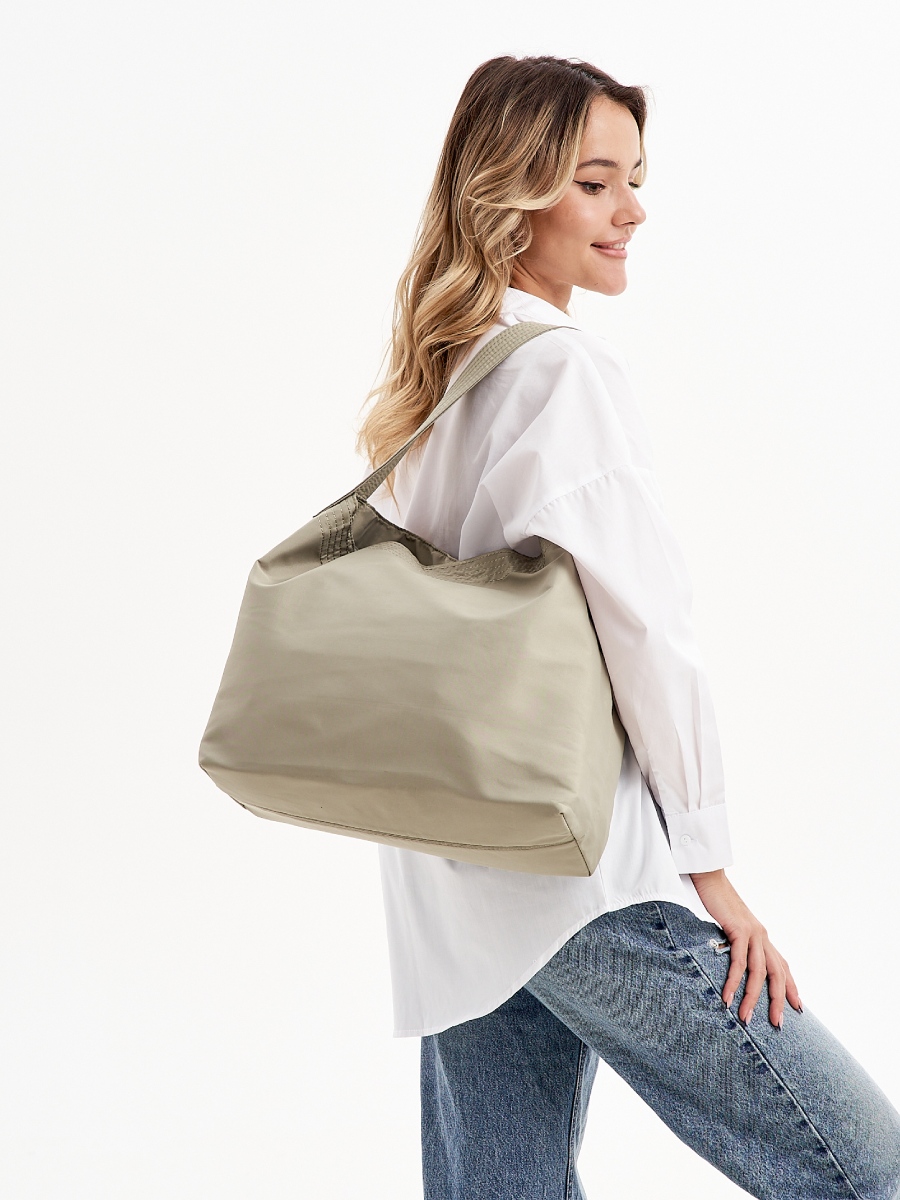 Женская сумка хобо с ручкой изготовлена из качественного полиэстера с матовой фактурой. Сумка большая, размер шоппера – (ВхШхГ) 34х37х14 см., подходит для документов формат А4. В сумке одно вместительное отделение с подкладом из плотного полиэстера. Внутри карман на молнии. Широкий несъемный ремень 54 см. позволит комфортно носить сумку на плече. Сумка мешок застегивается на магнитную кнопку. Фурнитура выполнена из металла в серебристом цвете. Сумка поставляется в текстильной (пыльник) и полиэтиленовой упаковке, что защищает ее от повреждений, а также позволяет удобно хранить женскую сумочку в дальнейшем использовании.