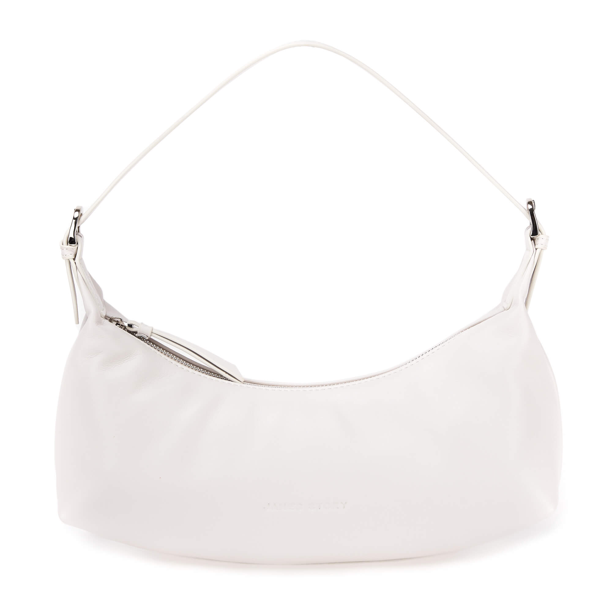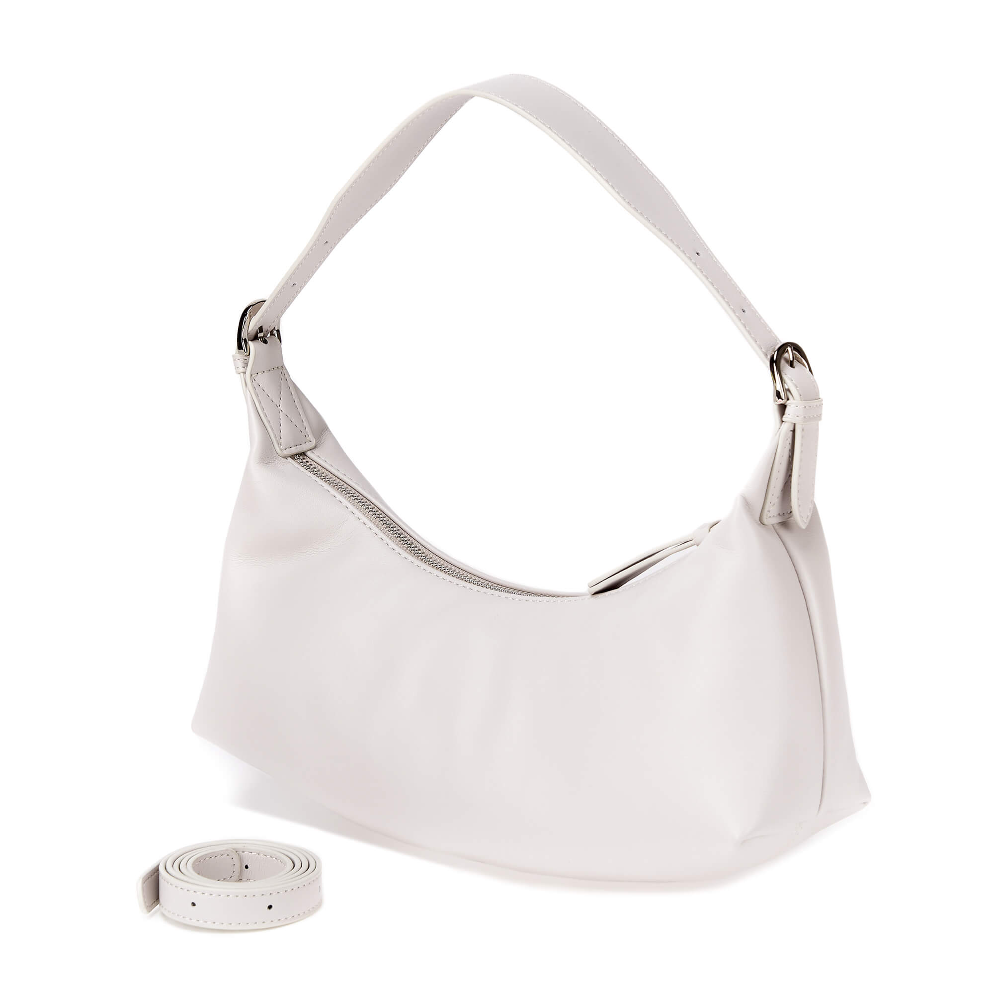 Сумка-багет из натуральной гладкой матовой кожи. Основное отделение на молнии,внутри один потайной карман. К сумке прилагается длинный плечевой ремень.