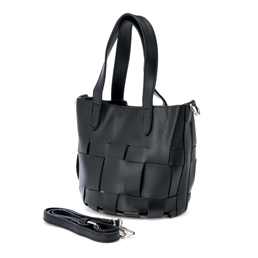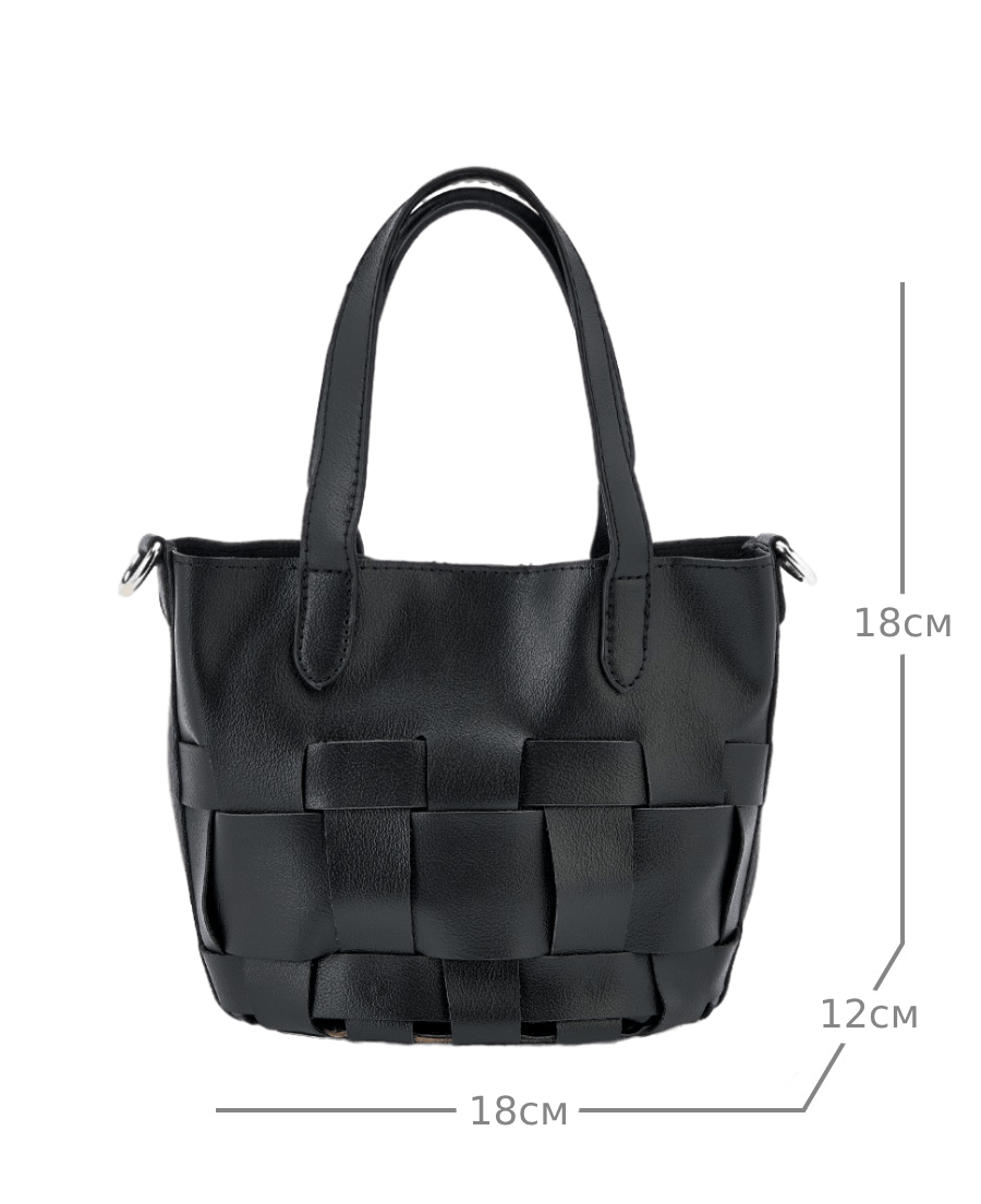 Женская сумка тоут выполнена из качественной матовой экокожи. Сумка средняя, габариты изделия (ВхШхГ)- 18х18х12 см. Модель выполнена без подкладки в технике переплетённых лент из кожи. Сумка плетеная закрывается на магнитную кнопку. В комплекте есть миниатюрная косметичка на молнии (14х12х7 см. ), регулируемый плечевой ремень до 110 см, удобно носить через плечо или как кроссбоди. Мягкая форма и оригинальный дизайн – такая сумка на плечо дополнит любой современный образ. Уплотненное дно позволяет сумочке сохранять форму и устойчивость. Фурнитура выполнена из металла в серебристом цвете. Сумка с застежкой поставляется в текстильной (пыльник) и полиэтиленовой упаковке, что защищает ее от повреждений, а также позволяет удобно хранить женскую сумочку в дальнейшем использовании.