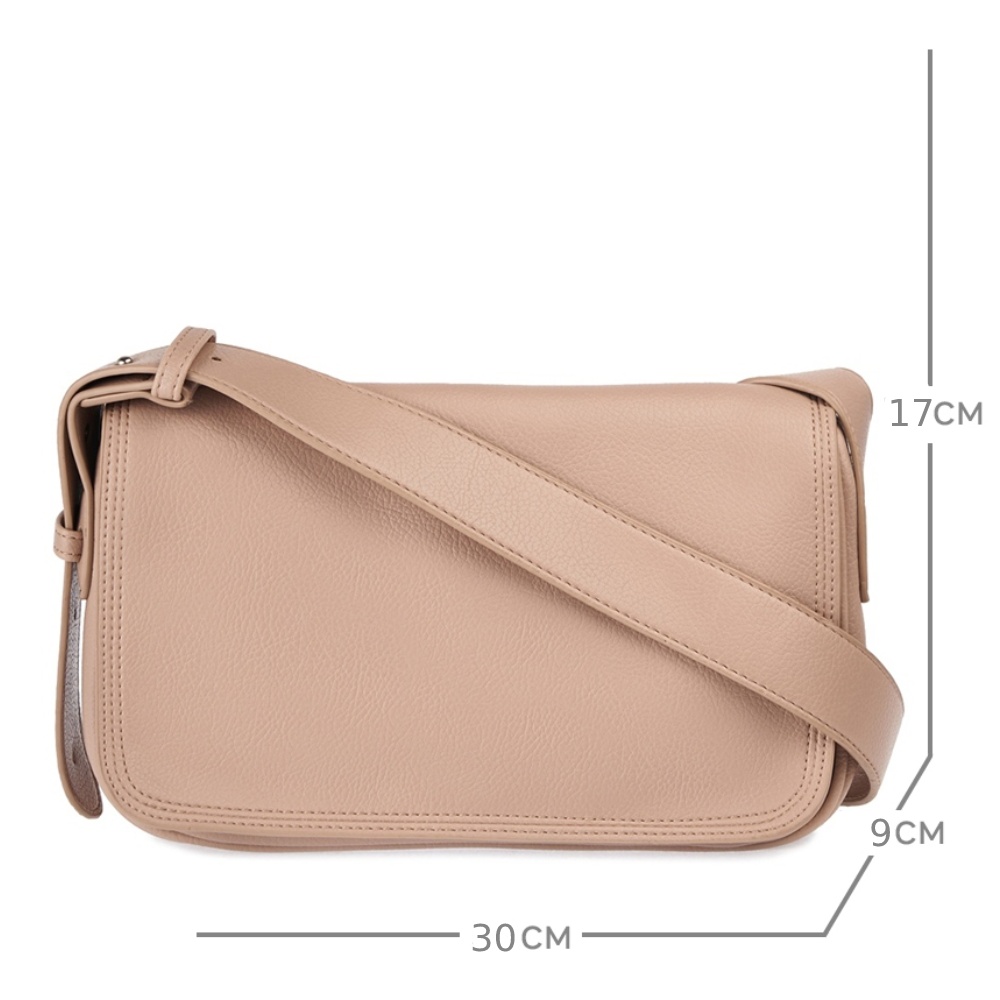 Женская сумка из мягкой зернистой экокожи на широком ремне. Габариты - 30х17х9 см. Основное отделение на подкладе из плотного полиэстера закрывается на молнию и клапан с магнитной кнопкой. Внутри есть карман на молнии и два открытых кармана. Ремень регулируется по длине до 80 до 100 см. Фурнитура выполнена в серебристом цвете. Сумка поставляется в текстильной и полиэтиленовой упаковке.