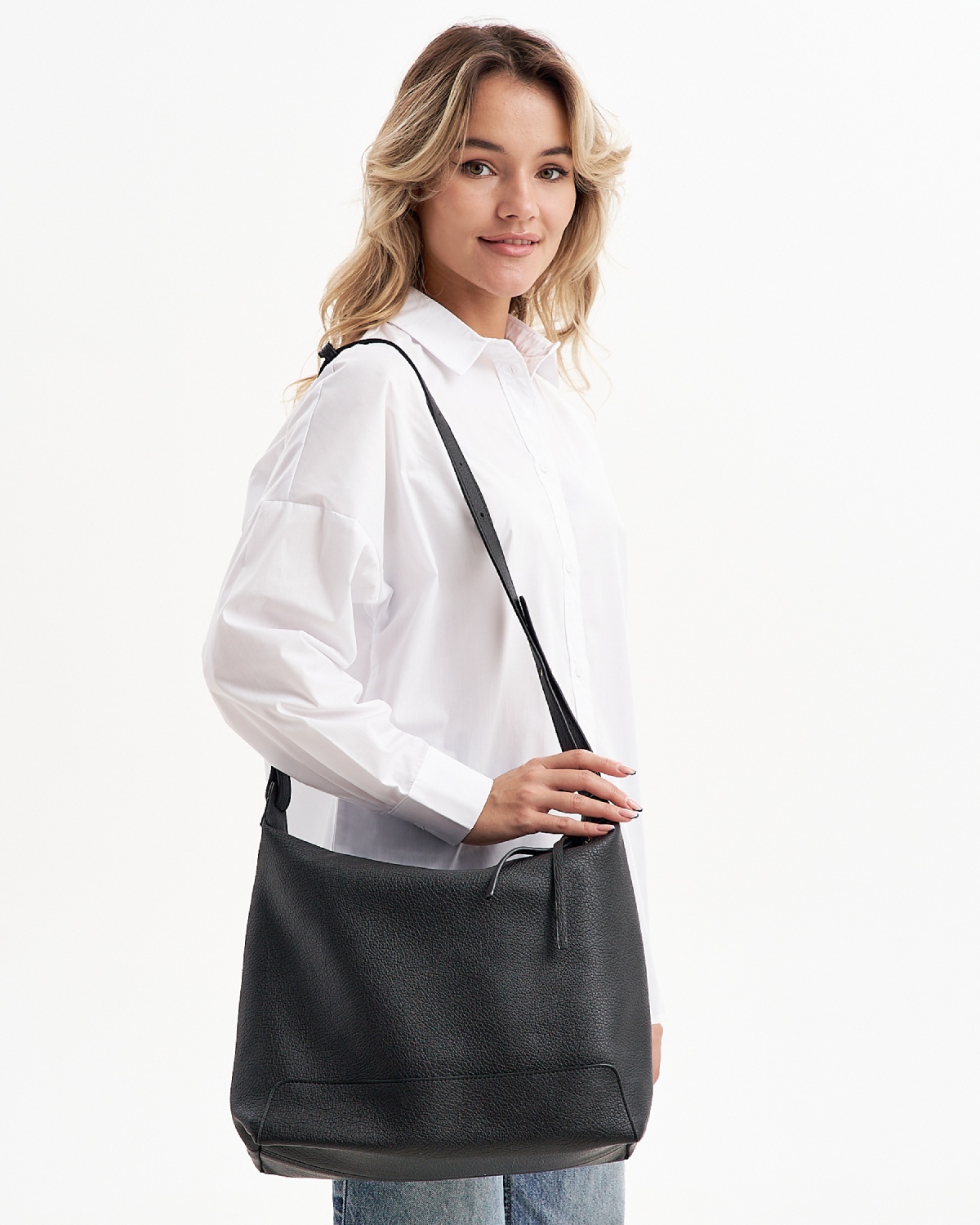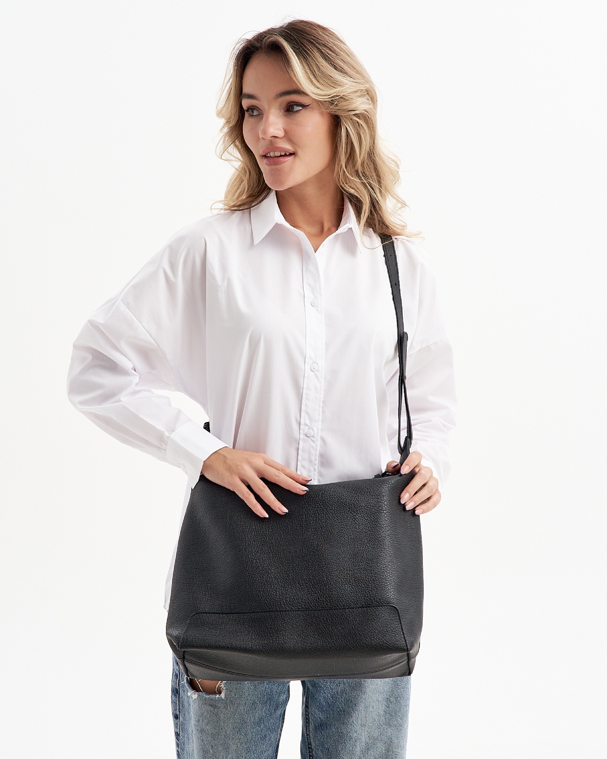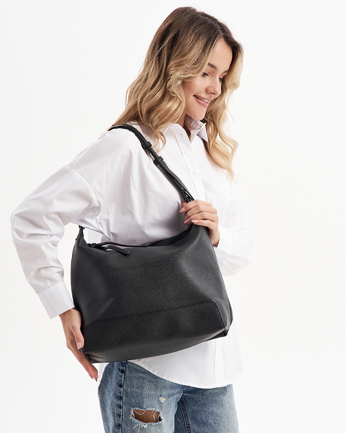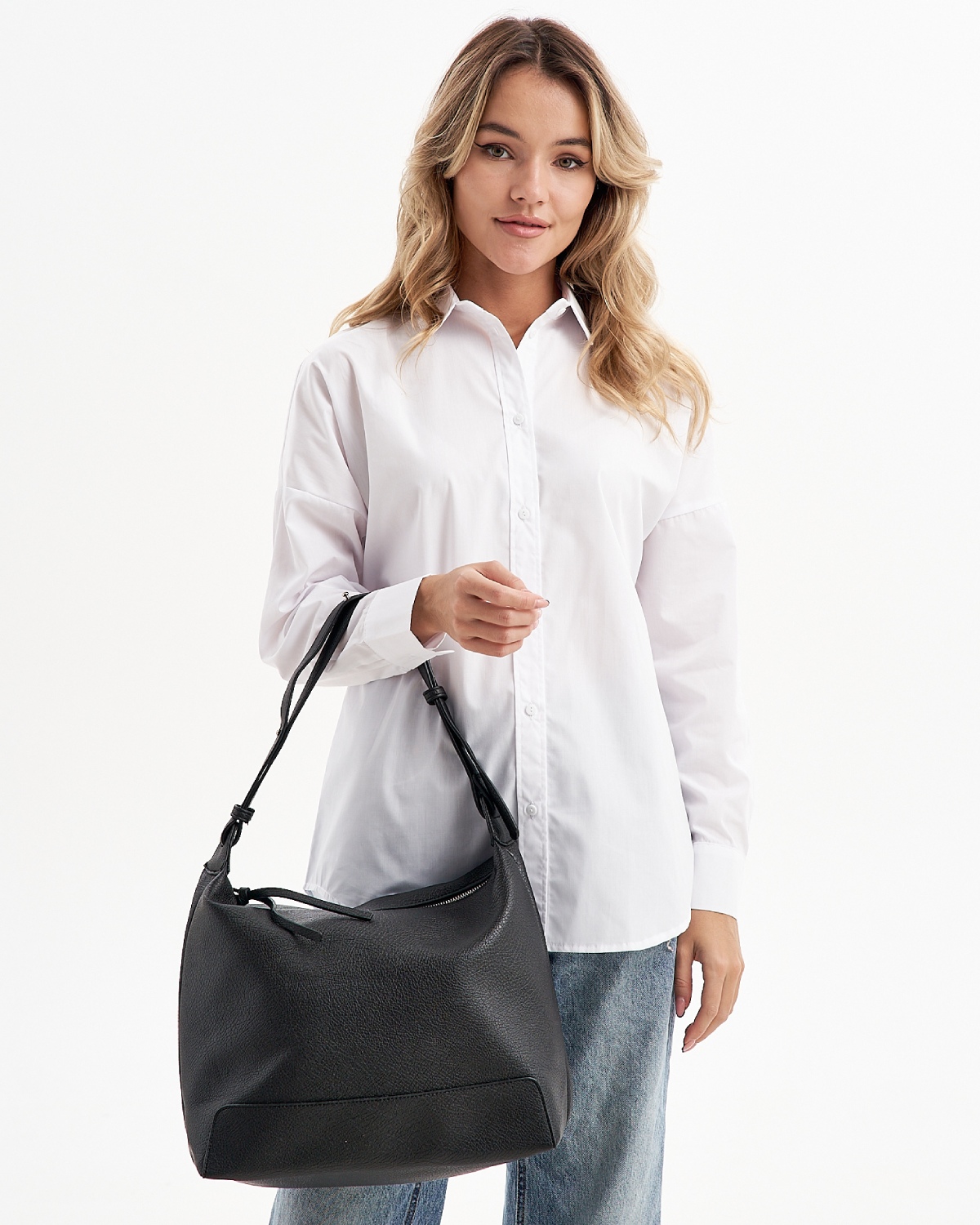 Женская сумка хобо с высокой ручкой изготовлена из качественной экокожи с зернистой фактурой. Мягкая и модная форма – такая универсальная легкая сумка на плечо дополнит любой образ. Сумка большая, размер шоппера – (ВхШхГ) 30х35х14 см., подходит для документов формат А4. Внутри модели находится одно вместительное отделение на подкладе из плотного полиэстера.Сумка мешок застегивается на прочную магнитную кнопку. Фурнитура выполнена из металла в серебристом цвете. Сумка поставляется в текстильной (пыльник) и полиэтиленовой упаковке, что защищает ее от повреждений, а также позволяет удобно хранить женскую сумочку в дальнейшем использовании.