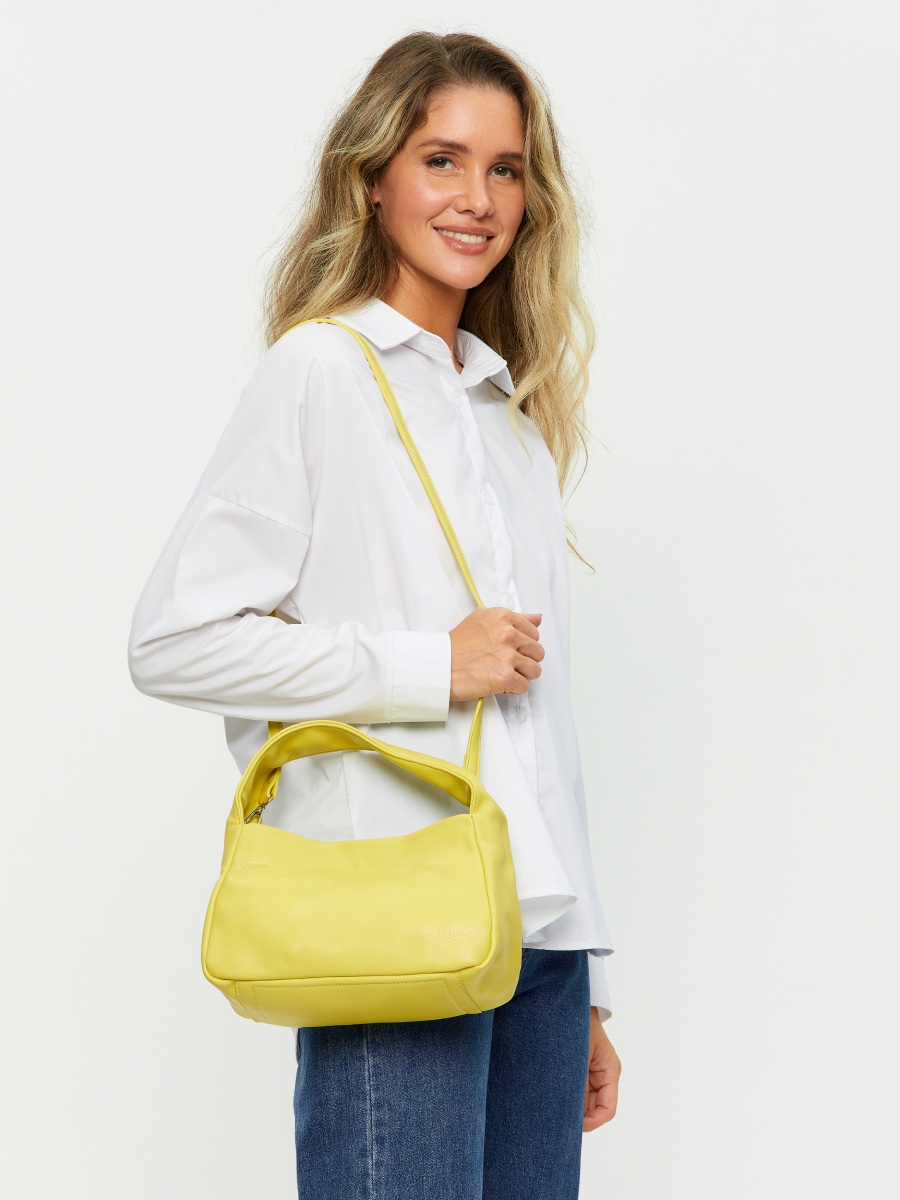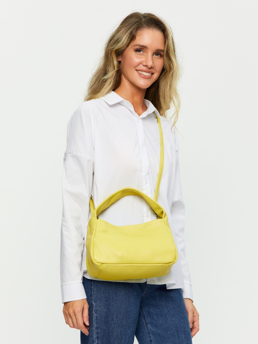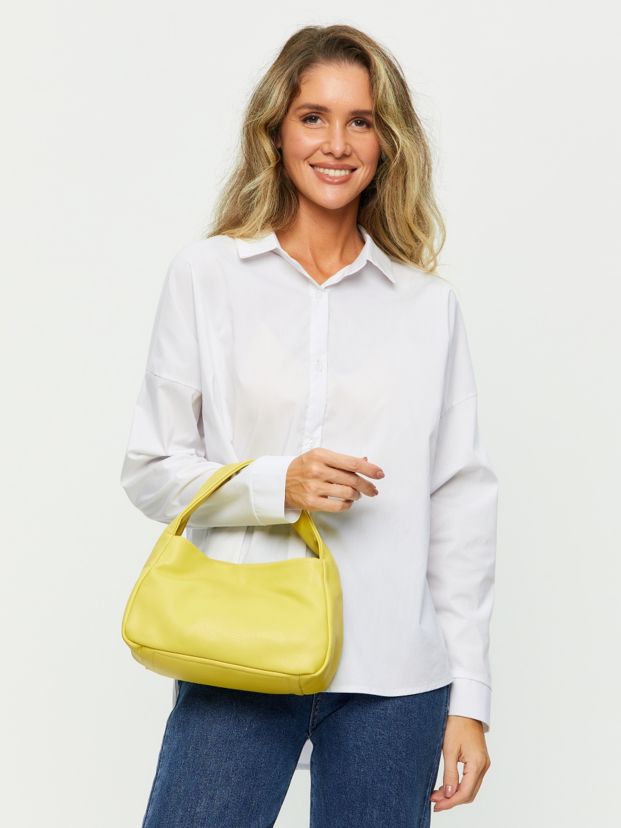 Женская сумка-багет выполнена из качественной экокожи, которая имеет приятную зернистую фактуру. Мягкая форма и насыщенный цвет – такая сумка на плечо дополнит любой современный образ. Сумка средняя, габариты изделия (ШхВхГ)- 26х16х10 см. Главное отделение сумки с широким ремнем застегивается на магнитную кнопку. В комплекте есть текстильная косметичка на молнии размером 18х10х7 см. и плечевой ремень, регулируемый по длине до 110 см, поэтому сумочку можно носить на плечо и через плечо как кросс-боди. Уплотненное дно позволяет сумочке сохранять форму и устойчивость. Фурнитура выполнена в серебристом цвете.