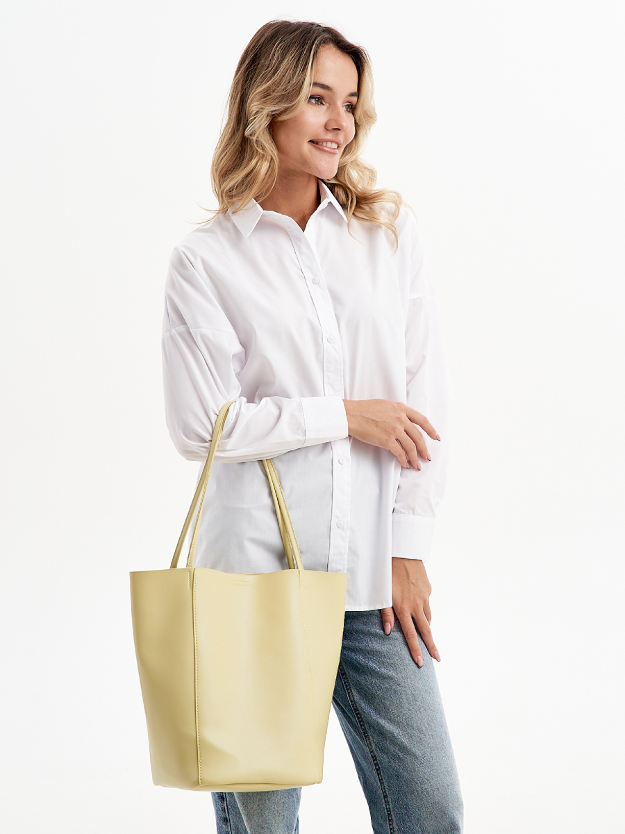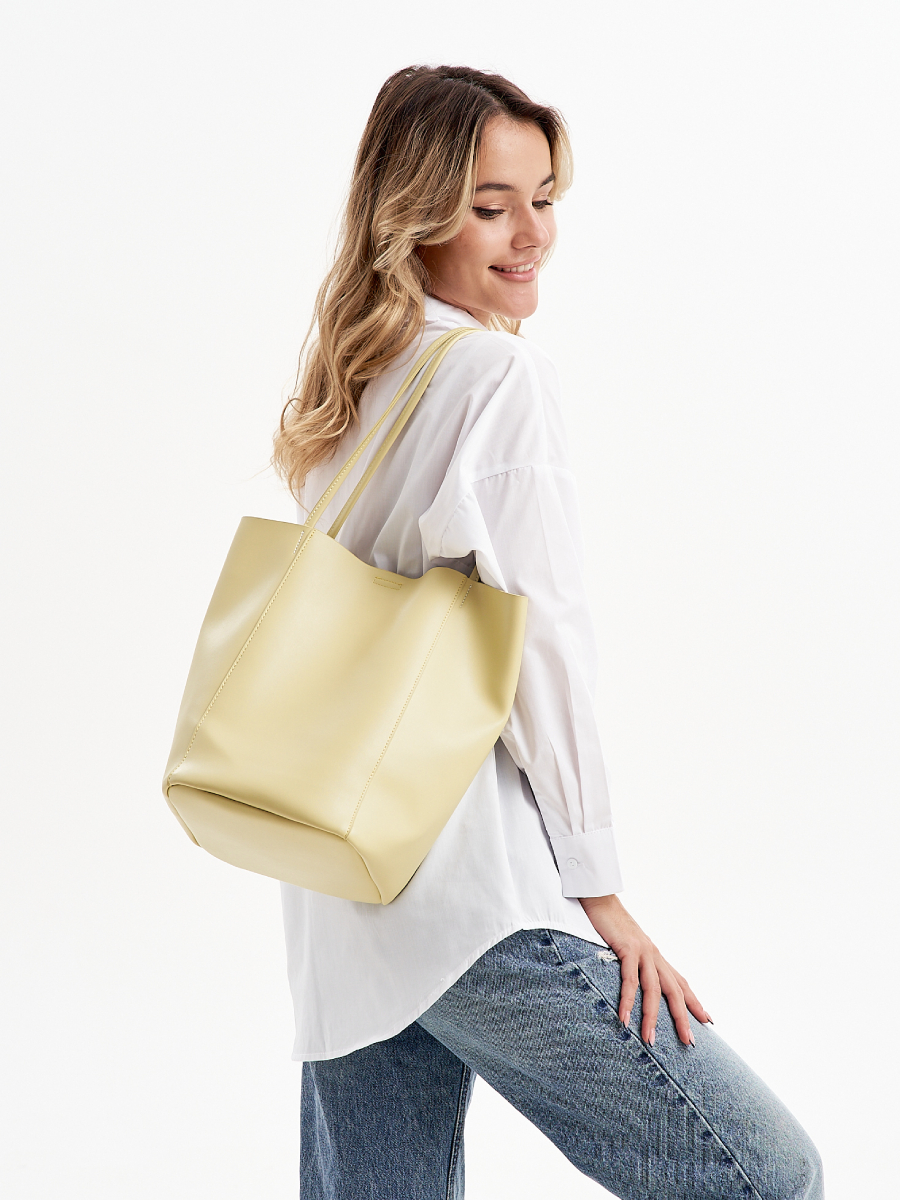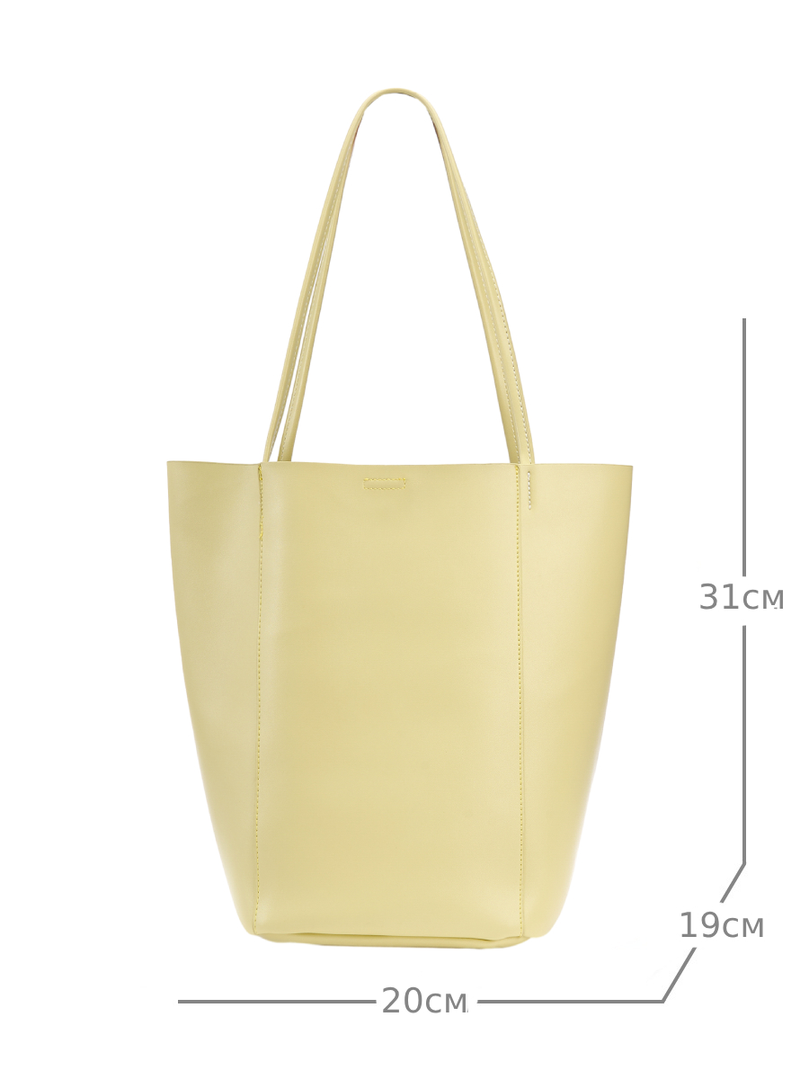 Женская сумка на плечо выполнена из качественной гладкой экокожи, невероятно мягкой и приятной фактуры. Габариты шоппера по дну изделия (ВхШхГ) 31х20х19см. позволяют разместить документы А4 и ноутбук. Внутри сумочки находится одно большое основное отделение без подклада, которое закрывается на магнит. В комплект входит косметичка из искусственной кожи на молнии, размером 17х17х11 см. Высота ручек составляет 24 см. Уплотненное дно позволяет сумке-шоппер лучше сохранять форму и устойчивость. Фурнитура выполнена из металла в серебристом цвете. Сумка с застежкой поставляется в текстильной (пыльник) и полиэтиленовой упаковке, что защищает ее от повреждений, а также позволяет удобно хранить женскую сумочку в дальнейшем использовании.