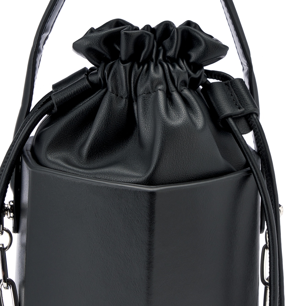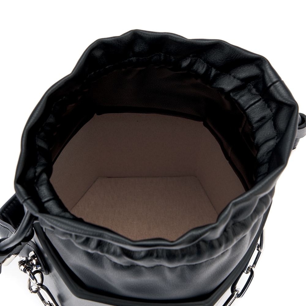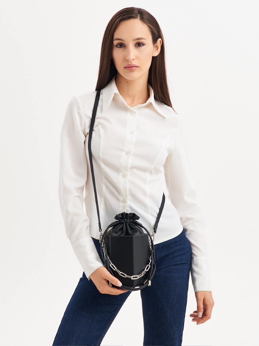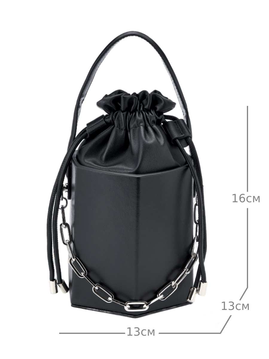 Стильная сумка кроссбоди в оригинальной форме с жестким каркасом из гладкой натуральной кожи не оставит Вас без внимания. Верх модели выполнен из мягкой натуральной кожи в форме мешочка, вшитого в сумку. Подклад из искусственной замши. Габариты сумки через плечо -( ВхШхГ) 16х13х13 см. Сумка-ведро декорирована ручкой из кожи и металлической цепочкой, длина 35 см. В комплекте кожаный плечевой ремень, регулируется по длине до 120 см. и позволяет носить сумку на плече или через плечо , как кросс-боди. Фурнитура выполнена в серебристом цвете. Сумка поставляется в текстильной (пыльник) и полиэтиленовой упаковке, что защищает ее от повреждений, а также позволяет удобно хранить женскую сумочку в дальнейшем использовании.