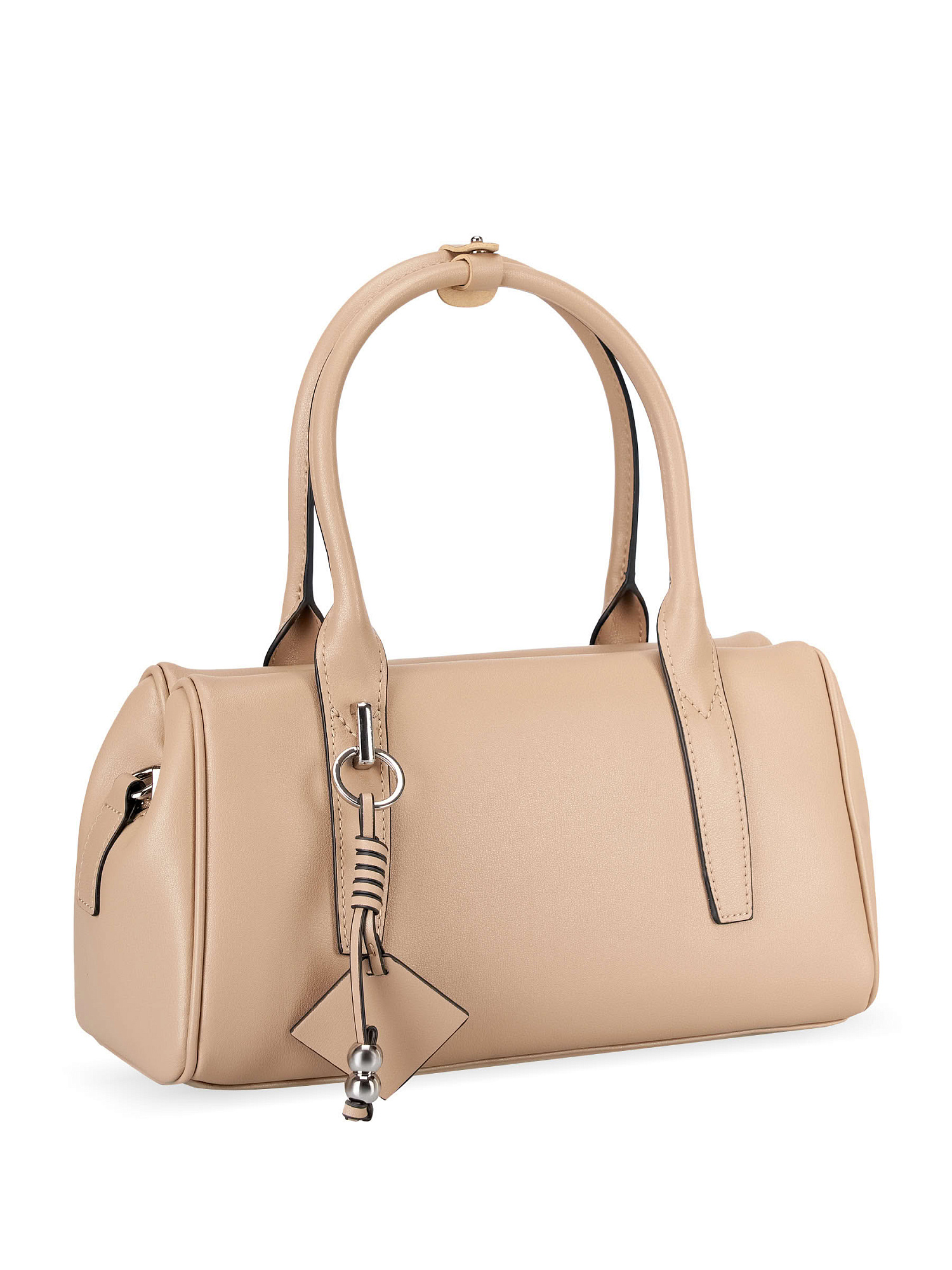 Небольшая сумка с двумя ручками из натуральной гладкой кожи. Сумочка имеет габариты 27*15*11. Основное отделение закрывается на молнию, внутри два кармана, один открытый, другой потайной. Подклад сумки из плотного полиэстера. В комплекте есть плечевой ремень, который регулируется по длине от 94 до 113 см. Фурнитура сумки выполнена в металле под серебро.